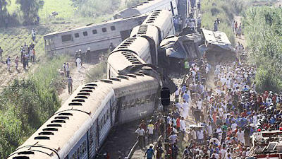 قاہرہ ..... مصر میں 2مسافر ٹرینوں کے تصادم میں مرنیوالوں کی تعداد 41ہوگئی۔یہ حادثہ مصر کے ساحلی شہر اسکندریہ میں پیش آیا۔حکام کے مطابق یہ حادثہ اس وقت پیش آیا جب ایک ٹرین قاہرہ جبکہ دوسری پورٹ سعید کی جانب سے آ رہی تھی۔ مصر کی وزارت صحت کا کہنا ہے کہ حادثے میں 120 سے زیادہ افراد زخمی ہوئے ہیں۔مصر کی وزارت صحت کے مطابق علاقے کے تمام ہسپتالوں میں ہنگامی صورتِ حال نافذ کر دی گئی ہے جبکہ مصر کی ٹریفک وزیر نے حادثے کی تحقیقات کا حکم دے دیا ہے۔حکام کا کہنا ہے کہ ابتدائی اطلاعات کے مطابق ایک ٹرین خراب ہو کر ٹریک پر کھڑی تھی جب دوسری ٹرین اس سے ٹکرا گئی۔قاہرہ میں سنہ 2013 میں ایک ٹرین کے ایک منی بس اور دیگر گاڑیوں سے ٹکرانے کے نتیجے میں درجنوں افراد ہلاک ہو گئے تھے۔مصر میں ریل کا سب سے جان لیوا حادثہ سنہ 2002 میں ہوا تھا جب دارالحکومت قاہرہ کے قریب ایک ٹرین میں آگ لگنے سے 370 سے زیادہ افراد ہلاک ہو گئے تھے۔