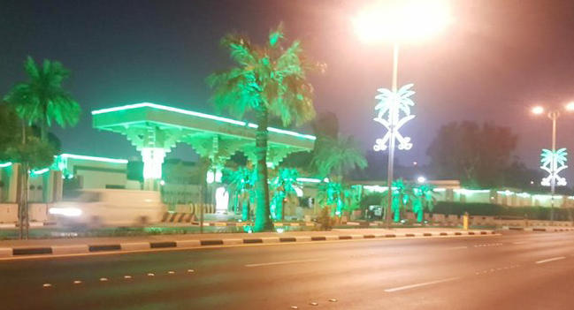 دمام .... مشرقی ریجن گورنریٹ نے 87ویں یوم وطنی کا جشن منانے کیلئے پوری عمارت کو سبز رنگ میں رنگ دیا گیا۔ پوری عمارت سبز روشنی میں نہائی ہوئی ہے۔ گورنریٹ نے ٹویٹر کے اپنے اکاﺅنٹ کا ہیڈر بھی یوم الوطنی کی مناسبت سے تبدیل کردیا ہے۔مشرقی ریجن کی تمام عمارتوں ، کمشنریوں اور تحصیلوں کے دفاتر کو بھی سعودی پرچم سے سجادیا گیا۔