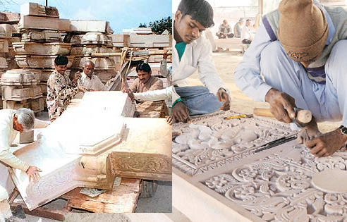 ایودھیا۔۔۔۔ایودھیا میں مندر کی تعمیر کیلئے وشو ہندوپریشد ( وی ایچ پی) کی ورکشا پ میں تراشنے کیلئے پتھر دوبارہ پہنچائے جانے لگے۔وی ایچ پی کے ذرائع کے مطابق گزشتہ ماہ سے ابتک تقریباً20ٹرک پتھر آچکے ہیں اور انہیں رام سیوک پورم میں رکھا جارہا ہے جہاں8افراد پتھروں کوتراشنے کے کام میں مصروف ہیں۔وشو ہندو پریشد کے ماڈل کے مطابق مجوزہ مندر 2منزلہ ہوگی، اسکی اونچائی 128فٹ ، لمبائی 269فٹ 5انچ اور چوڑائی 140فٹ ہوگی۔ مجموعی طور پر 212ستون ہونگے ہر منزل پر 106ستون نصب کئے جائیں گے۔فرش کے ستونوں کی اونچائی16فٹ 8انچ جبکہ پہلی منزل پر بنائے جانے والے ستونوں کی اونچائی 14فٹ 8انچ ہوگی۔ وی ایچ پی نے دعویٰ کیا کہ مندر کے فرش سمیت تقریباً 70فیصد پتھر تراشے جاچکے ہیں۔