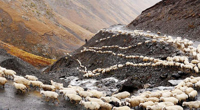 روسی گڈریا 9ہزار فٹ بلند پہاڑی راستے پر بھیڑیں چراتا ہے