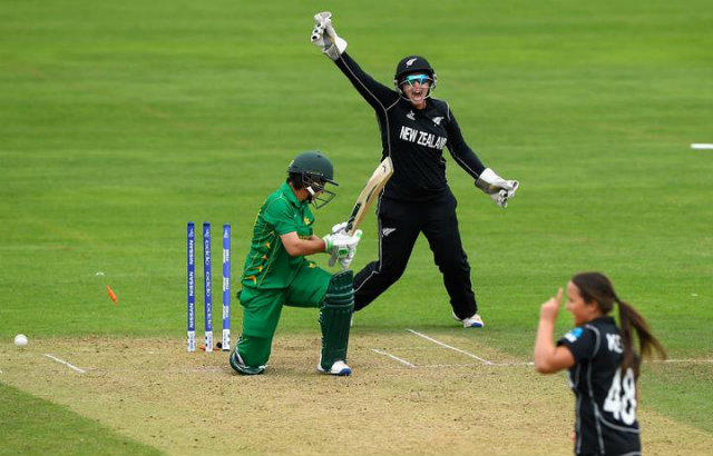شارجہ: نیوزی لینڈ ویمنز ٹیم نے سیریز کے پہلے ٹی ٹوئنٹی میچ میں پاکستان کو سنسنی خیز مقابلے کے بعد 15 رنز سے شکست دیدی۔ شارجہ کرکٹ اسٹیڈیم میں3 میچوں کی سیریز کے پہلے میچ میں پاکستان نے ٹاس جیت کر نیوزی لینڈ کو بیٹنگ کی دعوت دی ۔ مہمان ٹیم نے 8 وکٹوں کے نقصان پر 147 رنز بنائے۔ کیٹ مارٹن 46، سوفی ڈیوائن 41 اورکیٹی پرکنز 26 رنز کیساتھ نمایاں رہیں۔ پاکستان کی جانب سے سعدیہ یوسف نے 3 جبکہ ایمن انور، ثنا ءمیر اور جویریہ خان نے ایک، ایک وکٹ حاصل کی۔148 رنزکے ہدف کے تعاقب میں پاکستان ٹیم 7 وکٹ پر 132 رنز بنا سکی۔ ناہیدہ خان 34، جویریہ خان 27 اورکپتان بسمہ معروف 25 رنز کیساتھ نمایاں رہیں۔ تھامسن نیوٹن نے 2 جبکہ لی تاہوہو اور سوفی ڈیوائن نے ایک، ایک وکٹ حاصل کی۔