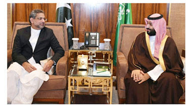 ریاض ....سعودی ولی عہد شہزادہ محمد بن سلمان سے پیر کو ریاض میں وزیراعظم پاکستان شاہد خاقان عباسی نے ملاقات کی۔ انہوں نے پاکستان اور سعودی عرب کے تاریخی تعلقات اور مختلف شعبوں میں انہیں فروغ دینے کے امکانات کا جائزہ لیا۔ علاوہ ازیں علاقائی حالات حاضرہ پر بھی تبادلہ خیال کیا گیا۔ شہزادہ محمدبن سلمان نے پاکستانی عوام اور حکومت کیلئے قدرو منزلت کا اظہار کیا جبکہ پاکستانی وزیراعظم نے کہا کہ پاکستانی عوام اور حکومت کے یہاں سعودی عرب کا مقام نہایت بلند ہے۔ اس موقع پر سعودی وزیر تجارت و سرمایہ کاری ڈاکٹر ماجد القصبی، وزیر مملکت برائے امور خارجہ ڈاکٹر نزاد مدنی، مشیر ایوان شاہی فہد العیسیٰ شریک ہوئے جبکہ پاکستان کی طرف سے وزیر خارجہ خواجہ محمد آصف، چیف آف اسٹاف قمر جاوید باجوہ، ڈائریکٹر جنرل محکمہ خفیہ نوید مختار ، اور پاکستانی حکومت کے کئی عہدیدار بھی موجود تھے۔