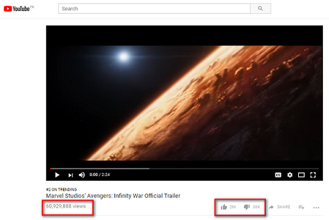 مارول اسٹوڈیو زکی آنے والی فلم Avengers: Infinity War کے ٹریلر نے لانچ ہونے کے دو دن میں ہی یوٹیوب پر 60ملین سے زیادہ ویوز حاصل کر لئے۔