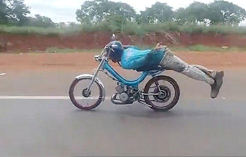 برازیلیا.... برازیل کے شہر ایناپولس میں پولیس نے ایک ایسے موٹر سائیکل سوار کو گرفتار کیا ہے جو سپر مین کی طرح موٹر سائیکل چلارہا تھا۔وہ موٹر سائیکل پر لیٹے اپنے سر کی مدد سے ہینڈل کو پکڑے ہوئے تھا۔ 24سالہ نوجوان کے پاس ڈرائیونگ لائسنس بھی نہیں تھا جبکہ موٹر سائیکل پر نمبر پلیٹ بھی نہیں تھی۔ اسکی یہ تصویر قریب سے گزرنے والے ایک کار ڈرائیو رنے اتاری تھی۔ بعد میں پتہ چلا کہ پولیس اہلکاروں نے خطرناک ڈرائیونگ کرنے کے الزام میں اسے گرفتار کرلیا۔اسے ضمانت پر رہا کردیا گیا ہے اور کہا گیا ہے کہ وہ تحقیقات کیلئے بعد میں پیش ہو۔