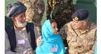 راولپنڈی.... آرمی چیف جنرل قمر جاوید باجوہ نے کہا ہے کہ بہادر جوانوں کی موجودگی میں کوئی دھمکی پاکستان کو نقصان نہیں پہنچاسکتی ۔ ان کی قربانیاں ہی ہمیں پرامن اور مستحکم پاکستان کی طرف لے جارہی ہیں۔ آئی ایس پی آر کے مطابق آرمی چیف قمر جاوید باجوہ نے کرک کے علاقے گڑھ خیل میں محمدعلی خان کے گھر کا دورہ کیا اور مادر وطن کےلئے جان دینے والے ان کے تینوں بیٹوں کی عظیم قربانیوں پر اہلخانہ کو زبردست خراج تحسین پیش کیا۔ اس موقع پر پاک فوج کے سربراہ کا کہنا تھا کہ ایسے عظیم والدین اور بہادر بیٹے ہوں تو کوئی دھمکی پاکستان کو نقصان نہیں پہنچاسکتی اور کوئی رقم ان کی حب الوطنی و قربانیوں کی قیمت نہیں چکاسکتی۔ ان کی قربانیاں ہی ہمیں پرامن اور مستحکم پاکستان کی طرف لے جارہی ہیں۔ دوسری جانب محمدعلی نے دورہ کرنے اور گاﺅں کیلئے فلاحی پیکیج دینے پرآرمی چیف کا شکریہ اداکیا۔