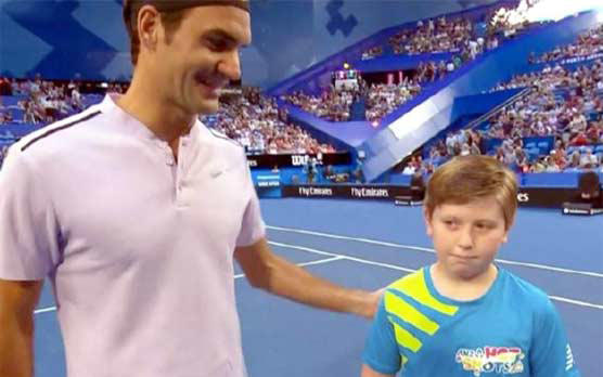 پرتھ: ہوپ مین کپ کے دوران گزشتہ روز پرتھ ایرینا میں بیٹھے شائقین اس وقت حیران رہ گئے جب شرمیلے آسٹریلین بچے نے عالمی شہرت یافتہ ٹینس اسٹار راجر فیڈرر سے ہاتھ ملانے سے گریز کیا اور سوئس اسٹار کو مسکراتے ہوئے جیری سینفیلڈ کی کمر پر تھپکی دے کر بات بنانا پڑی۔امریکی کھلاڑی جیک سوک کیخلاف میچ سے قبل جیری سینفیلڈ نے ٹاس کیلئے سکہ اچھالا تو راجر فیڈرر نے ہینڈشیک کیلئے ہاتھ آگے بڑھایا مگر بچہ ان کی جانب دیکھنے کے سوا کچھ نہیں کرسکا لہٰذا ایسے حالات کے ماہر سوئس اسٹار کو اس کی کمر پر تھپکی دے کر بات بنانا پڑی۔