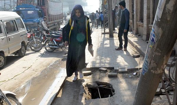 سڑ کو ں پر کھلے گٹر شہرو ں میں عام دیکھنے کو ملتے ہیں ۔ان کا پرسانِ حال کو ئی نہیں ۔اگر کسی شہری کو ا حساس ہو جائے تو وہ کسی نہ کسی طریقے کواپنا کر اس خطرے سے با قی لوگوں کو آ گاہ کر نے کی کو شش کر تا ہے ۔کبھی با نس کھڑا کر کے اس پر کو ئی کترن یا چیتھڑا لہرا دیا جاتا ہے اور کبھی ویگن کا ٹا ئر رکھ کر اپنے حصے کا دیا جلانے کی کو شش کی جا تی ہے ۔دھنک کے صفحے پر دی گئی تصویر تو فٹ پاتھ کی ٹوٹ پھوٹ کا نظارہ اسی انداز میں پیش کر رہی ہے جیسے گٹر بغیر ڈھکن کے ۔اس میں ہو نے والے حاد ثے کی نو عیت یکسا ں ہی ہے ۔کبھی کسی طا لبہ کا پا ﺅ ں اس پر پڑ گیا تو اس کے نتےجے کا کون ذمہ دار ہو گا ؟