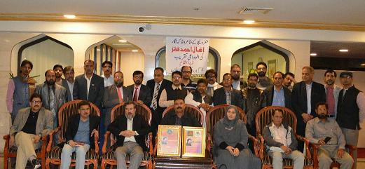 سید ابرار حسین نے کہا کہ میرا اور اقبال احمد قمر کا ساتھ تقریباً 35برس پرانا ہے۔ سعودی عرب میں قیام کے ابتدائی دنوں میں ہماری شامیں اکثر اکٹھے گزرتی تھیں۔ ہمارے خاندانی مراسم ایک دوسرے کے ساتھ ایسے ہیں کہ سگے بھائیوں سے بڑھ کر رشتہ ہے۔ افضل خان نے کہا کہ میرا اقبال احمد قمر سے 1980ءسے تعلق ہے۔ میں سید ابرارا ور اقبال احمد قمر اپنے ویک اینڈ ایک ساتھ گزارتے تھے۔میرے طویل سفر میں اقبال احمد قمر میرے ہمسفر رہے ۔ہم دونوں ذکاءصدیقی کے شاگرد ہیں۔ اُس زمانے میں بھی ہمارے استاد اقبال احمد قمر کی طرف زیادہ توجہ دیتے تھے ،اس لئے کہ وہ اقبال احمد قمر کی صلاحیتوں کو پہچانتے تھے۔ انہوں نے اِس ہیرے کو ایسا تراشا کہ اِس کی چمک ابھی تک قائم ہے۔ بالآخر الفاظ نے افضل خان کا ساتھ چھوڑ دیا اوران کا عکس اقبال احمد قمر کی آنکھوں میں تیرتے نمکین پانی میں صاف نظر آ رہا تھا۔