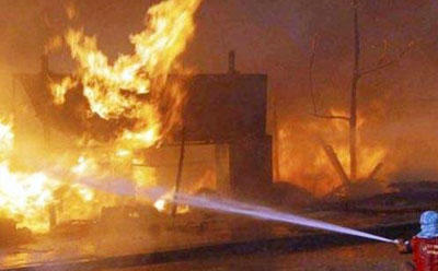 جے پور.... ریاست راجستھان میں آتشزدگی کے باعث 5افراد ہلاک ہوگئے۔ پولیس کے مطابق ریاست میں آتشزدگی کا واقعہ اس وقت پیش آیا جب ریاستی دارالحکومت میں علاقہ وردھیا نگر میں واقع ایک گھر میں اچانک شدید آگ بھڑک اٹھی جس کے نتیجے میں خاندان کے5افراد جھلس گئے تاہم پولیس کے مطابق ابتدائی تحقیق کے مطابق گیس سلنڈر سے گیس لیک ہو رہی تھی جس کے بعد گھر کے مکینوں میں سے کسی نے اسے چلانے کی کوشش کی جس سے زوردار دھماکہ ہوا اور پورے گھر میں آگ لگ گئی ۔ پولیس نے بتایا کہ مزید تحقیقات جاری ہیںجبکہ آگ بجھانے والے عملے نے آگ پر قابو پا لیا ہے ۔