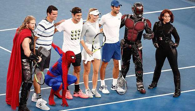 میلبورن:سال کے پہلے گرینڈ سلام ٹینس ٹورنامنٹ آسٹریلین اوپن کے آغاز سے2دن قبل گزشتہ روز بچوں کے دن کے حوالے خصوصی پروگرام منعقد کئے جن کے دوران بچوں نے ہالی وڈ کے مشہور اور پسندیدہ کرداروں کو مختلف ٹینس اسٹارز کے ساتھ مقابلہ کرتے دیکھا ۔ ان کرداروں میں اسپائیڈر مین، تھور اور ونڈر وومن وغیرہ شامل تھے ۔ میلبورن ٹینس سینٹر میں کڈز ڈے کے موقع پر سب کے لئے داخلہ مفت تھا اور بچوں کے ساتھ بڑے بھی ان کرداروں کو ٹینس کھیلتا دیکھ کر محظوظ ہوئے ۔ دفاعی چیمپیئن راجر فیڈرر نے اسپائیڈر مین کے ساتھ ٹیم بنا کر میلوس راونک اور تھور کا مقابلہ کیا۔ کیرولین ووزنیاکی اور نوواک ڈوکووچ نے بھی بچوں کے ساتھ نمائشی مقابلوں میں حصہ لیا۔ آسٹریلین اوپن15جنوری سے شروع ہو رہا ہے تاہم اس میں کئی بڑے کھلاڑی شامل نہیں ۔ انجری اور فٹنس مسائل کے باعث جو کونٹا، ویمنز سنگلز کی دفاعی چیمپیئن سیرینا ولیمز اور اینڈی مرے اس سال ایکشن میں نہیں ہو ں گے ۔