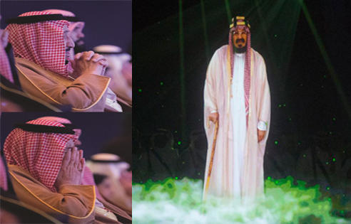 ریاض - - - - بانی مملکت شاہ عبدالعزیز رحمۃ اللہ علیہ کے ہمشکل اداکار عبداللہ کو جنادریہ میلے 32میں اسٹیج پر کھڑا پا کر خادم حرمین شریفین شاہ سلمان آبدیدہ ہو گئے ، جذبات میں آنکھوں سے آنسو چھلک گئے۔