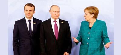 ماسکو.... روسی صدر ولادیمیر پوٹین نے اپنے فرانسیسی ہم منصب ایمانوئل میکرون اور جرمن چانسلر میرکل کے ساتھ ٹیلی فون پر شامی تنازع کی موجودہ صورت حال پر گفتگو کی ہے۔ روسی وزارت خارجہ کے بیان میں کہاگیاکہ روسی صدر ولادیمیر پوٹین نے اپنے فرانسیسی ہم منصب ایمانوئل میکرون اور جرمن چانسلر میرکل کے ساتھ ٹیلی فون پر شامی تنازع کی موجودہ صورت حال پر گفتگو کی ۔ تینوں رہنماوں نے اس بات چیت کے دوران معلومات کے تبادلے پر اتفاق کرنے کے ساتھ ساتھ اقوام متحدہ کی فائربندی کے نفاذ کو ممکن بنانے پر بھی توجہ مرکوز کی۔ روسی حکومتی بیان میں تینوں رہنماو¿ں کی بات چیت کی مزید تفصیل جاری نہیں کی گئی۔ دوسری جانب شام کے محصور زدہ علاقے مشرقی غوطہ پر دمشق حکومت کی بمباری اور شیلنگ کا سلسلہ جاری ہے۔