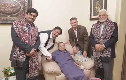 ریاض(ذکا ء اللہ محسن) پاکستان کے وفاقی وزیر برائے سمندر پار پیر صدرالدین راشدی نے کمیونٹی کی معروف شخصیت ڈاکٹر منصور میمن کے گھر پہنچ کر ان کے والد غلام محمد میمن کی عیادت کی۔ موصوف سندھ کے چیف سیکریٹری رہ چکے ہیں۔ غلام محمد میمن نے بتایاکہ ان کے والد کی صحت سنبھل رہی ہے۔ پیر راشدی نے کہا کہ جس طرح ڈاکٹر منصور میمن سعودی عرب میں بڑھ چڑھ کر سماجی کام کر رہے ہیں۔ ان کے والد بھی ملازمت کے دوران بہترین کارکردگی کا مظاہرہ کیا کرتے تھے۔ ان کی خدمات کو مدتوں یاد رکھا جائے گا۔ انہوں نے کہا کہ میری دعا ہے کہ اللہ تعالیٰ غلام محمد میمن کو جلد از جلد صحت یاب کر دے۔