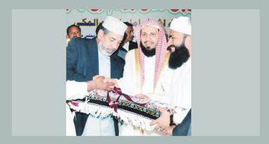 اسلام آباد..... امام کعبہ صالح بن محمد آل طالب نے اتوار کی شام بین الاقوامی اسلامی یونیورسٹی کے فیصل مسجد کیمپس کا دورہ کیا۔ انہوں نے فیصل مسجد میں نماز مغرب کی امامت کی اور یونیورسٹی کے زیر اہتمام ”قرآن و سنت کی روشنی میں میانہ روی کی ترویج و اشاعت پاکستان اور سعودی عرب کا کردار“ کے موضوع پر سیمینار کی صدارت بھی کی۔ امام حرم نے امت مسلمہ کی ترقی کی دعا کی اور پاک سعودی تعلقات کو مثالی اور مضبوط ترین قرار دیا ۔ سیمینار میں اسلامی یونیورسٹی کے ریکٹر ڈاکٹر معصوم یٰسین زئی ، صدر ڈاکٹر احمد یوسف الدریویش ، نائب صدور ، ڈائریکٹرز جنرل اور دیگر اہم شخصیات نے بھی شرکت کی۔