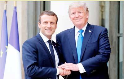 واشنگٹن.... امریکہ کے دورے پر آئے ہوئے فرانسیسی صدر ایمانویل میکرون نے امریکی صدر ڈونلڈ ٹرمپ سے اہم ملاقات کی۔ ملاقات کے دوران ایران کے ساتھ ہونے والا جوہری معاہدے اور شام کے حوالے سے حکمت عملی اور تجارتی تنازعات جیسے موضوعات پر تبادلہ خیال کیا گیا۔ صدر ٹرمپ اور صدر میکرون نے عشائیے میں شرکت کی جس میں دونوں ممالک کی خواتین اول بھی شریک ہوئیں۔