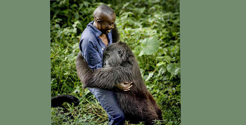 کانگو .... کانگو میں بارانی جنگلات میں شکاریوں سے بچانے پربن مانس اتنا خوش ہوا کہ اس نے اپنے نگراں سے لپٹ کر ممنونیت اور تشکر کا اظہار کیا۔ آندرے ورونگا نیشنل پارک میں نگراں ہے اور وہ خاص طور پر بن مانسوں کی نگرانی کرتا ہے۔ پہاڑی بن مانس کی نسل اب ختم ہوتی جارہی ہے اور یہاں انکی تعداد صرف 880رہ گئی ہے۔ یونیسکو نے اس بارانی جنگل کو عالمی ورثے کی حیثیت دے رکھی ہے۔