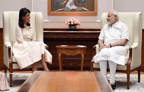 نئی دہلی۔۔۔۔اقوام متحدہ میں متعین امریکی سفیر نکی ہیلی گزشتہ روز ہندوستان کے دورے پر دہلی پہنچیں ۔ انہوں نے وزیر اعظم نریندر مودی سے ملاقات کرکے علاقائی و باہمی امور پر تبادلہ خیال کیا۔