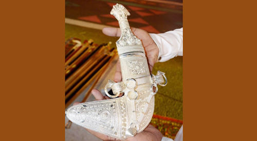 طائف .... سلطنت عمان نے عکاظ میلہ 12میں اپنے دستکاروں کی مصنوعات اور عوامی طائفوں کے پروگرام پیش کرکے شائقین کے دل جیت لئے۔ تفصیلات کے مطابق عکاظ میلے کے شائقین عمانی خنجر کی صنعت پر پسندیدگی کا اظہار کررہے ہیں۔ سلطنت عمان میں خنجر قومی علامت مانا جاتا ہے۔ یہ عمانی پرچم کے لوگو کے طور پر بھی دیکھا جاسکتا ہے۔ اسکے ساتھ دو تلواریں بنی ہوتی ہیں۔ گزشتہ صدیوں کے دوران عمانی شہری خنجر کو مردانگی کی علامت مانتے رہے ہیں۔ عصر حاضر میں بھی انہوں نے اپنی اس روایت کو برقرار رکھا ہے۔