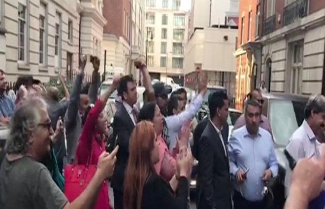 لندن : شریف خاندان کی رہائش گاہ کے باہر پھر ہنگامہ