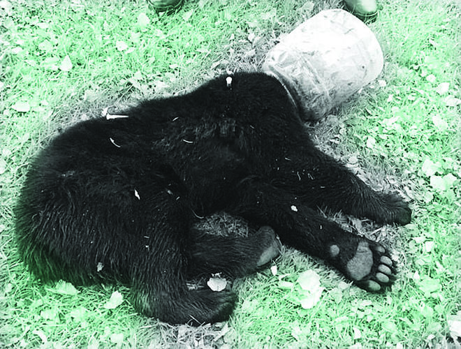 ریچھ کے بچے نے سر ڈرم میں پھنسا لیا