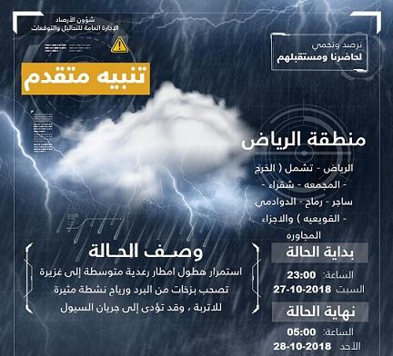 #الإنذار_المبكر #طقس_السعودية#الهيئة_العامة_للأرصاد_وحماية_البيئة pic.twitter.com/dVmMX8Qdgb— الأرصاد وحمايةالبيئة (@PmeMediacen) October 27, 2018