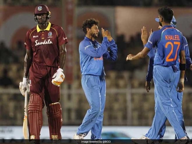 کولکتہ: ہند نے ویسٹ انڈیز کو پہلے ٹی ٹوئنٹی میں 5 وکٹوں سے شکست دے کر 3 میچوں کی سیریز میں0-1کی برتری حاصل کرلی۔ ہند نے 110 رنز کا ہدف 17.5 اوورز میں 5 وکٹوں پر باآسانی حاصل کرلیا۔ دنیش کارتھک نے 31 رنز بنائے اور آوٹ نہیں ہوئے۔ ابتداءمیں ہند کو بھی مشکلات کا سامنا کرنا پڑا جب 45 رنز پر اس کے 4 کھلاڑی پویلین لوٹ چکے تھے۔ اوشان تھامس اور کپتان بریتھ ویٹ نے 2 ، 2 کھلاڑیوں کو آوٹ کیا۔ قبل ازیں ہند نے ٹاس جیت کر مہمان ٹیم کو پہلے بیٹنگ کی دعوت دی۔ ویسٹ انڈین ٹیم مقررہ 20 اوورز میں 8 وکٹوں پر صرف 109 رنز بناسکی۔ فابین ایلن 27 رنز کے ساتھ ٹاپ اسکورر رہے۔ ہند کی جانب سے کلدیپ یادو نے 3 کھلاڑیوں کو آوٹ کیا اور مین آف دی میچ رہے ۔دوسرا ٹی ٹوئنٹی 6 نومبر منگل کو لکھنو میں کھیلا جائے گا۔