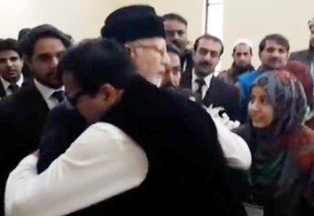 گلو بٹ اور طاہر القادری میں مصافحہ و معانقہ