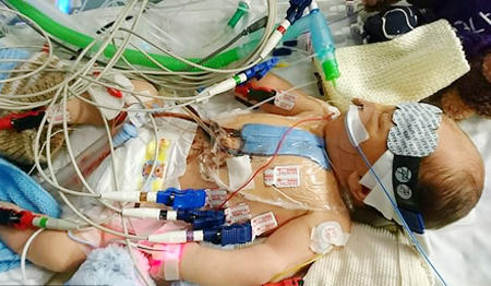 برسٹل.... برسٹل کے چلڈرن اسپتال میں پیدائش کے دوسرے دن دل کے دورے میں مبتلا ہوجانے والے بچے کے والد نے لوگوں سے اپیل کی ہے کہ وہ بچے کے روزمرہ اخراجات کی مد میں عطیات دیں۔ تفصیلات کے مطابق جیکب انگلبائی بچہ جو اب 16ماہ کا ہوچکا ہے۔ آپریشن سے پیدا ہوا تھا۔ وہ وقت سے پہلے پیدا ہوا تھا اورآپریشن کرنا ضروری ہوگیا اور اسی وجہ سے بچے کی ماں کو اسپتال لایا گیا تھا۔اطلاعات کے مطابق آپریشن سے پیدا ہونے والا یہ بچہ غالباً شکم مادر میں اسی تکلیف سے دوچار تھا اور پیدا ہونے کے بعد اسے سانس لینے میں تکلیف ہونے لگی۔ یہ ایک ایسی کیفیت تھی جو 10ہزار بچوں میں سے کسی ایک میں ہوتی ہے اورکچھ لوگ اسے دل کے دورے سے بھی تعبیر کرتے ہیں۔ ایک دن بعد بچے کی اوپن ہارٹ سرجری کرائی گئی۔ اس دوران اسے دل کا ایک او ردورہ پڑا جس کی وجہ سے اسکے دماغ کو بھی 50فیصد نقصان پہنچا۔ اب یہ بچہ کافی حد تک معذور نظر آرہا ہے اور اسکی ہر وقت دیکھ بھال ضروری ہوگئی ہے تاہم یہ کام کافی خرچ طلب ہے ا سلئے بچے کے والد نے لوگوں سے عطیات کی اپیل کی ہے۔