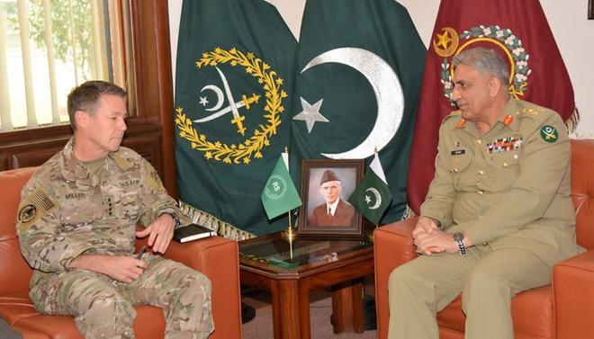 راولپنڈی... پاکستا ن اور افغانستا ن نے افغان امن عمل افغان عوام کی خواہش کے مطابق کرنے اور دہشتگردوں کے خلاف موثر سرحدی اقدامات پر اتفاق کیا ہے۔ پاک فوج کے سربراہ جنرل قمر جاوید باجوہ نے کہاہے کہ افغانستان کا امن پاکستان میں امن کیلئے ضروری ہے۔آئی ایس پی آرکے مطابق آرمی چیف جنرل قمر جاوید باجوہ سے کمانڈر ریزولوٹ سپورٹ مشن افغانستان جنرل آسٹن اسکاٹ ملر نے ملاقات کی خطے کی صورتحال سے متعلق باہمی دلچسپی کے امور سمیت افغان مصالحتی عمل پر بھی تفصیلی بات چیت ہوئی۔ آرمی چیف اور کمانڈر ریزولوٹ سپورٹ مشن کے درمیان افغان امن عمل افغان عوام کی خواہش کے مطابق کرنے اور دہشت گردوں کے خلاف موثر سرحدی اقدامات پر اتفاق کیا گیا۔اس موقع پر جنرل قمر جاوید باجوہ نے کہا کہ پاکستان افغانستان میں امن دیکھنا چاہتا ہے۔