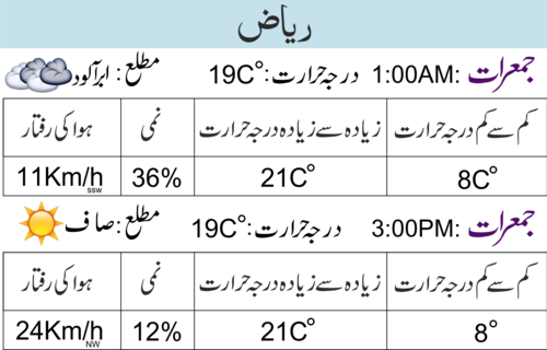 آئندہ 24 گھنٹوں میں موسم کیسا رہے گا؟ بدھ 16 جنوری 2019 3:00 موسم ریاض جده مدینه منوره شیئر: واپس اوپر جائیں