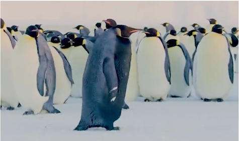 لندن ۔۔۔ برطانوی عالمی شہرت یافتہ نشریاتی ادارے بی بی سی کا عملہ ایک عرصے سے قطبین کے علاقے میں رہنے والی قد آور پینگوئنز کے بارے میں معلومات جمع کررہا ہے اور دستاویزی فلمیں تیار کررہا ہے۔ یہ ٹیم مشہور فلمساز اور ہدایتکار ڈیوڈ ایٹن بورو کی نگرانی میں کام کررہی ہے۔ جنہو ںنے اپنی تازہ ترین فلم جاری کردی ہے۔ اور جس میں نادر روزگار قسم کی ایک مکمل سیاہ فام پینگوئن کو دکھایا گیا ہے۔ ماہرین کا کہناہے کہ پینگوئن کی پشت پر ہلکا سا نیلا یا سیاہ رنگ تو ہوتا ہے مگر یہ پہلا موقع ہے کہ سر سے پیر تک کسی قد آور سیاہ فام پینگوئن کو دیکھنے کا موقع ملا ہے۔ ماہرین کا کہناہے کہ اسکی جلد اسلئے بھی سیاہ ہے کیونکہ پروں کی رنگت بھی مکمل سیاہی مائل ہے۔ حد یہ ہے کہ پیر بھی کالے ہیں اور یہ سب کچھ ماہرین کے خیال میں اسکی پیدائشی جینیاتی خرابی کا نتیجہ ہے۔ یہ نہ صرف اپنی رنگت کے اعتبار سے بلکہ قد اور قامت کے اعتبار سے بھی آس پاس نظر آنے والی دیگر پینگوئن میں سب سے نمایاں نظر آتی ہے اور اسکی چال بھی شاہانہ لگتی ہے اسی لئے اسے شہنشاہ پینگوئن کا نام دیا گیا ہے۔