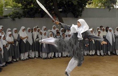 باحجاب لڑکیوں نے شمشیر زنی اور مارشل آرٹ میں مہارت حاصل کرلیں