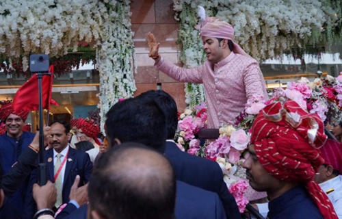تقریب کے موقع پرامبانی فیملی خوشی سے سرشار نظر آئی۔بیٹے کی شادی میں مکیش اور نیتانے بارات میں رقص بھی  کیا۔