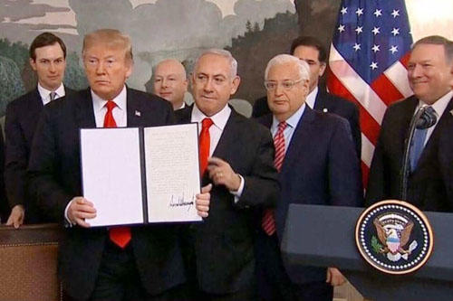 ٹرمپ نے گولان پر اسرائیلی بالادستی کا فرمان جاری کردیا