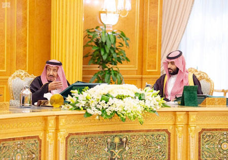 ریاض ۔۔۔ سعودی کابینہ کا اجلاس منگل کو ریاض کے قصر یمامہ میں خادم حرمین شریفین شاہ سلمان کی زیر صدارت منعقد ہوا۔ کابینہ نے محکمہ موسمیات و ماحولیات اور محکمہ جنگلی حیاتیات منسوخ کردیئے اور انکی جگہ نباتات کے فروغ اور صحراءکی یلغار روکنے والے قومی مرکز نیز ماحولیات کے نگراں قومی مرکز اور جنگلی حیاتیات کے فروغ کے قومی مرکز کے قیام کی منظوری دیدی۔ وزیر اطلاعات ترکی الشبانہ نے اجلاس کے بعدسعودی خبررساں ادارے ایس پی اے کو اسکی تفصیلات دیتے ہوئے کہا کہ کابینہ نے 10فیصلے صادر کئے۔گولان کی شامی پہاڑیو ںپر اسرئیل کے ناجائز قبضے کو تسلیم کرنے سے متعلق امریکی حکومت کے اعلان کی مذمت کی اور ایک بار پھر اسے مسترد کردیا۔ سبق کے مطابق سعودی عرب نے گولان سے متعلق سعودی عرب کے روایتی موقف کو غیر متزلزل قرار دیا۔کابینہ نے روس کی وزارت انصاف کے ساتھ تعاون کی مفاہمتی یادداشت کا اختیار سعودی وزیر انصاف کو تفویض کیا۔