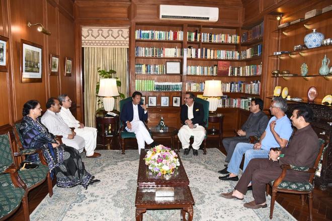 وزیراعظم عمران خان سے ایم کیو ایم کے وفد نے بھی گورنرہاوس میں ملاقات کی۔ ایم کیو ایم وفد نے وزیراعظم کو اپنے تحفظات سے آگاہ کیا۔ کراچی میں ترقیاتی منصوبوں سمیت باہمی تعاون دیگر امور پر بھی تبادلہ خیال کیاگیا ۔وفد میں ڈاکٹر خالد مقبول صدیقی ،عامرخان، نسرین جلیل، کنورنوید، فیصل سبزواری، وسیم اختر شامل تھے۔ایم کیو ایم کے وفد اور وزیر اعظم نے کراچی اور حیدرآباد کے مسائل اور ان کے حل کے لئے اقدامات پر تفصیلی گفتگو کی۔ وزیراعظم نے کراچی اور حیدر آباد کے مسائل کو ترجیحی بنیادوں پر حل کرنے اور وفاقی حکومت کی جانب سے فنڈز فراہم کئے جانے کی یقین دہانی کرائی۔ عمران خان نے کراچی میں بنیادی سہو لتوں کے فقدان پر تشویش کا اظہار کیا اور کہا کہ شہریوں کے مسائل سے آگاہ ہیں۔ کراچی پاکستان کا معاشی حب ہے، جو ملک کے استحکام میں کردار ادا کرتا ہے۔ وفاقی حکومت کراچی کے مسائل حل کرنے اور امن کے قیام میں ہر ممکن تعاون فراہم کرے گی۔ذرائع کے مطابق میئر کراچی وسیم اختر نے ملاقات کے دوران تحریری معاہدے اور کراچی پیکج پرعمل درآمد پر زور دیا۔ میئر کراچی نے کہا کہ ماس ٹرانزٹ سسٹم کے لئے وفاق تعاون کرے، ایم کیو ایم کی جانب سے یہ مطالبہ بھی کیا گیا کہ مسائل کے حل کے لئے پیکج پرعمل درآمد کرایا جائے۔ ایم کیو ایم وفد نے دفاتر کھولنے، رہنماﺅں کی سیکیورٹی اور حیدر آباد یونیورسٹی کے قیام کا معاملہ اٹھا دیا۔ذرائع کے مطابق ایم کیو ایم کے لاپتہ اور گرفتار شدہ کارکنوں کی بازیابی ،کراچی باالخصوص ایم کیو ایم کے ساتھ ناانصافیوں کا معاملہ بھی ملاقات میں زیرغورآیا۔ وزیر اعظم نے یقین دہانی کروائی کہ اتحادی جماعتوں کے تحفظات دور کئے جائیں گے۔