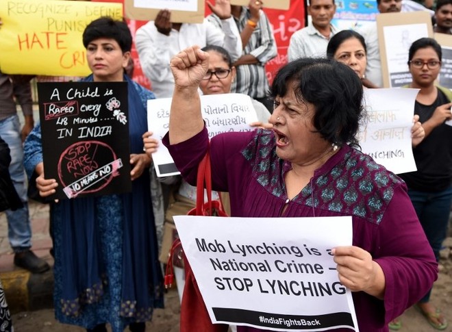 انڈیا میں شہری تنظیموں کے نمائندے مشتعل ہجوم کے ہاتھوں قتل پر احتجاج کر رہے ہیں۔ فائل فوٹو: اے ایف پی