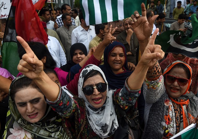 انڈین حکومت کے فیصلے کے خلاف لاہور میں مظاہرین نریندرا مودی کے پتلے کو جلا رہے ہیں۔ فوٹو اےا یف پی