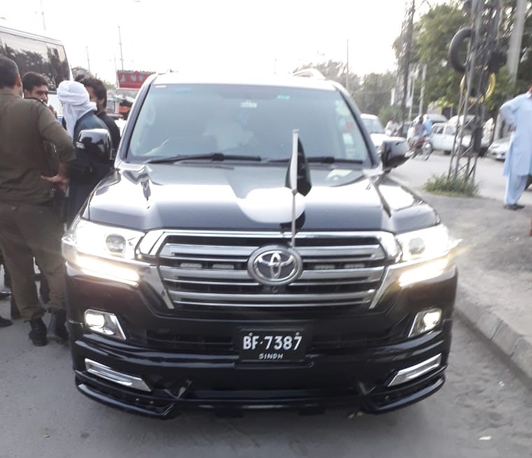 پولیس نے سیاہ رنگ کی لینڈ کروزر کو قبضے میں لے کر جعلی سرکاری اہلکار بننے کے جرم میں مقدمہ درج کر لیا ہے۔