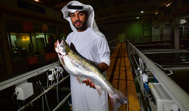سالمن مچھلی کی مکمل افزائش دبئی میں ہو رہی ہے۔(فوٹو ٹوئٹر)
