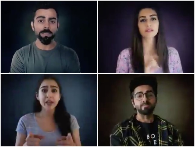 ویڈیو میں انڈیا کے مشہور کرکٹر ویراٹ کوہلی، بالی وڈ سٹار ایوشمان کھرانہ، سارہ علی خان اور کریتی سینن کو میز کے گرد دوستانہ ماحول میں بیٹھے دیکھا جا سکتا ہے۔
