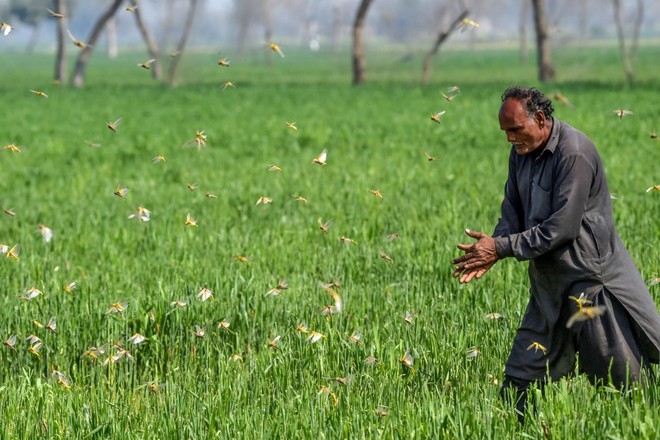 ’چرمیان کے رہائشی اور زمین دار محب اللہ ٹڈی دَل کی فوج دیکھ کر پریشان‘۔