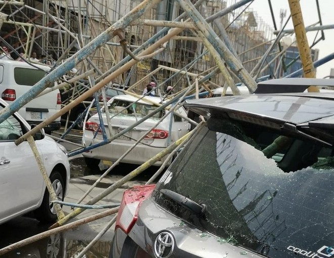 فولڈنگ پائپ تیز ہوا کو برداشت نہ کر سکے جس سے وہ اکھڑ گئے اورنیچے کھڑی متعدد گاڑیوں پر گرگئے جس کی وجہ سے گاڑیاں جزوی طور پرتباہ ہو گئیں۔