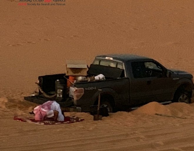 ’لا پتہ ہونے والا شہری صحیح سلامت ہے، اس کی گاڑی کے ٹائر ریت میں دھنس گیے تھے تاہم اس کے پاس پانی اور کھجوریں تھیں جن سے وہ گزارا کر رہا تھا‘۔