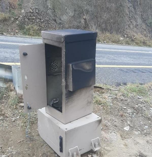 نامعلوم افراد نے شاہراہ پر نصب کیمرے کو تلف کرنے کے بعد اسے نذر آتش کردیا جس سے کیمرہ مکمل طور پرتباہ ہو گیا۔