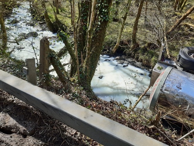 ٹویٹ میں لکھا گیا تھا کہ ’دودھ سے بھرا ٹینکر حادثے کا شکار ہو دریائے دولیس کے کنارے الٹ گیا ہے اور دودھ بہہ کر دریا میں شامل ہو رہا ہے تاہم کنٹینر کو سڑک سے ہٹا دیا گیا ہے۔‘