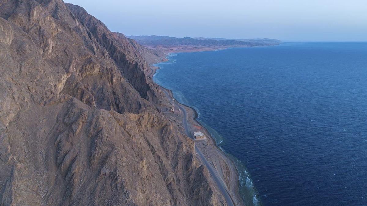 ’خلیج عقبہ کے فیروزی پانیوں اور سفید ساحلوں کے ساتھ یہاں پر 600 میٹر کی بلندی پر گرینائٹ بلاک ہے‘ ( فوٹو: العربیہ)