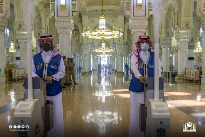 سعودی پریس ایجنسی کے مطابق انتظامیہ نے کہا ہے کہ ’45 ٹیموں میں 600 کارکن ہیں جو روزانہ 25 لیٹر سینیٹائزر کا استعمال کریں گی‘۔