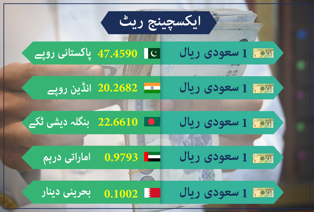 سعودی عرب کے مختلف ٹرانزیکشن مراکز کے مطابق اتوار کو سعودی ریال کا ریٹ کیا ہے؟