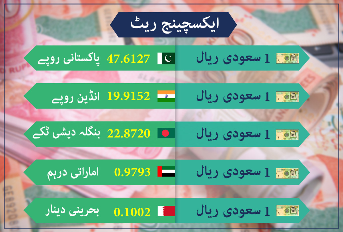 سعودی عرب کے مختلف ٹرانزیکشن مراکز کے مطابق منگل کو سعودی ریال کا ریٹ کیا ہے؟